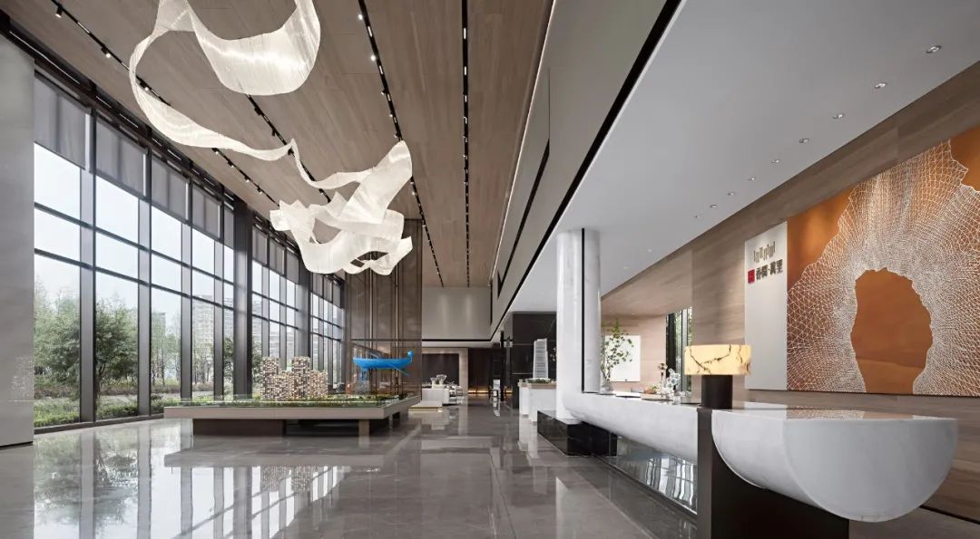 “汩汩而流的江河、蓊郁清涼的濕地生態(tài)、回響聲聲的打漁歌……溫州的清雅與悠哉成為我們設(shè)計時想要營造的空間格調(diào)。基于對自然的解讀與融合,我們將水的意象融入當代語言中,營造都會與自然交融相生的生活意境,抒敘場域潤澤身心、靜謐怡人的美學。”眾睦設(shè)計創(chuàng)始人潘賢挺先生如此詮釋。
