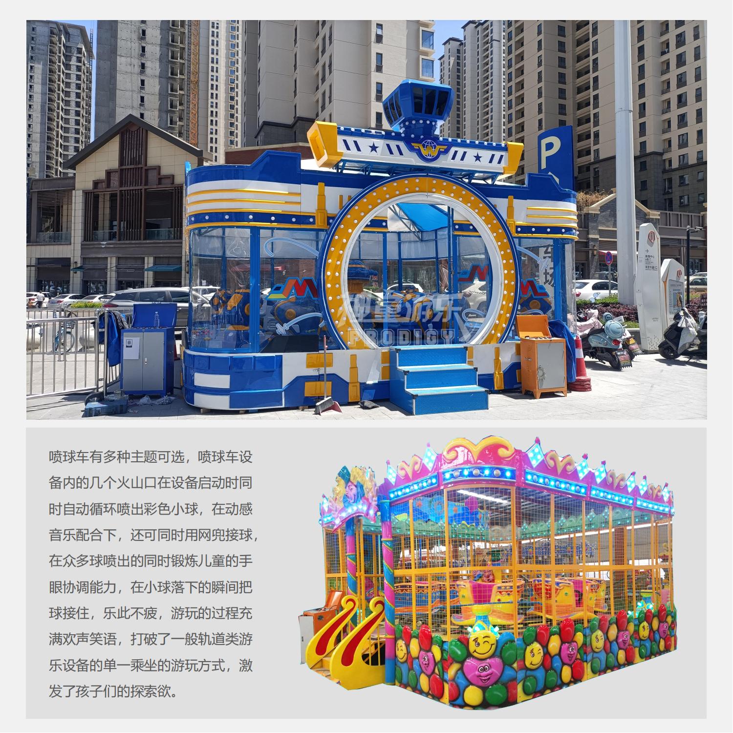 噴球車(chē)有多種主題可選,噴球車(chē)設(shè)備內(nèi)的幾個(gè)火山口在設(shè)備啟動(dòng)時(shí)同時(shí)自動(dòng)循環(huán)噴出彩色小球,在動(dòng)感音樂(lè)配合下,還可同時(shí)用網(wǎng)兜接球,在眾多球噴出的同時(shí)鍛煉兒童的手眼協(xié)調(diào)能力,在小球落下的瞬間把球接住,樂(lè)此不疲,游玩的過(guò)程充滿歡聲笑語(yǔ),打破了一般軌道類(lèi)游樂(lè)設(shè)備的單一乘坐的游玩方式,激發(fā)了孩子們的探索欲。